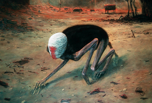 Dettaglio del dipinto AE73 di Zdzisław Beksiński (1973)